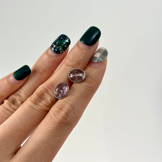 Super Seven Cabochon Oval Sterling Silver Ear Stud