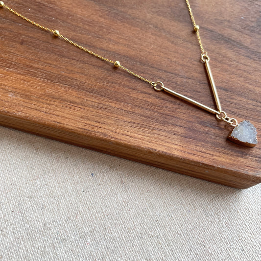 White Druzy Stone V-shaped Dotty Chain Gold-plated Necklace