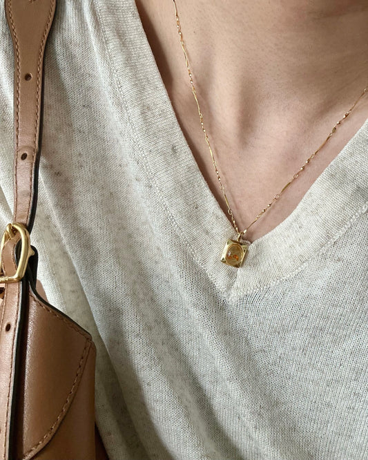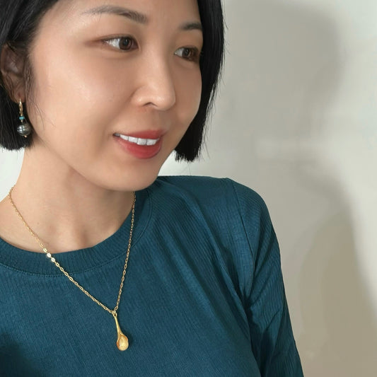 Amber Stud And Chain Hoop-like Gold-plated Earring