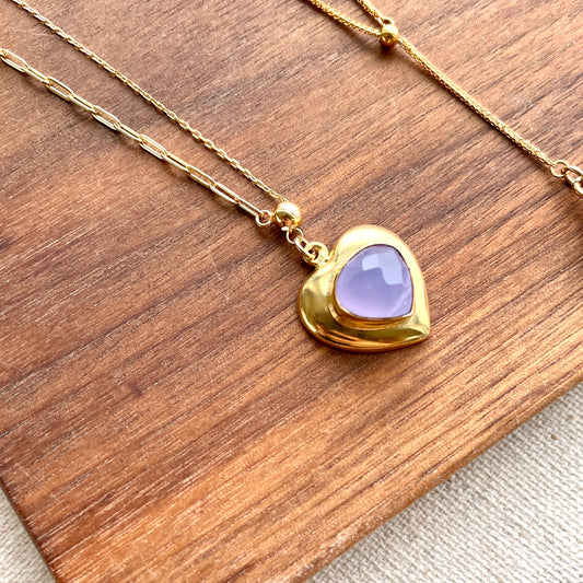 Lavender Chalcedony Heart Pendant Adjustable Y-shaped Gold-plated Necklace