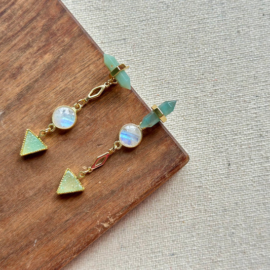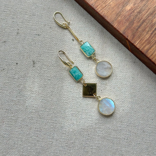 Amazonite And Moonstone Geometric Gold-plated Earring