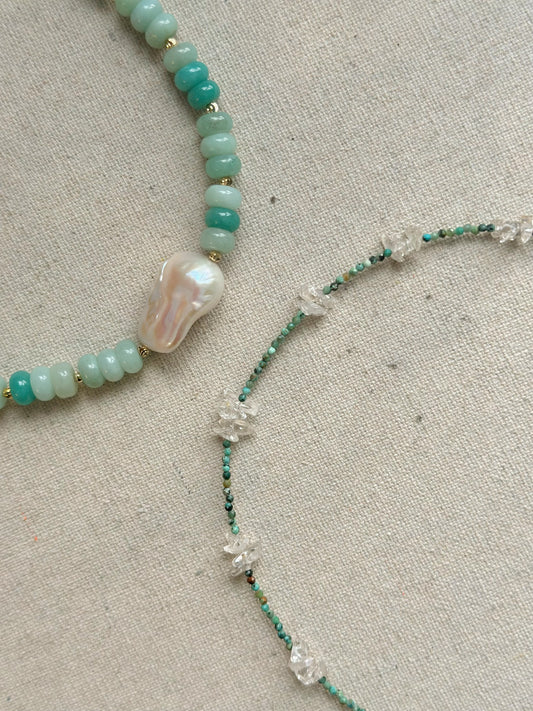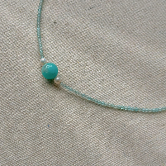 Amazonite And Baroque Freshwater Pearl Beaded Choker Necklace