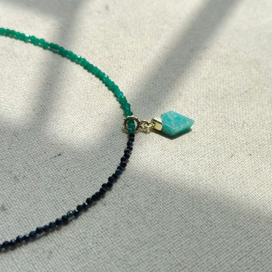 Amazonite With Sapphire And Green Onyx Beaded Necklace