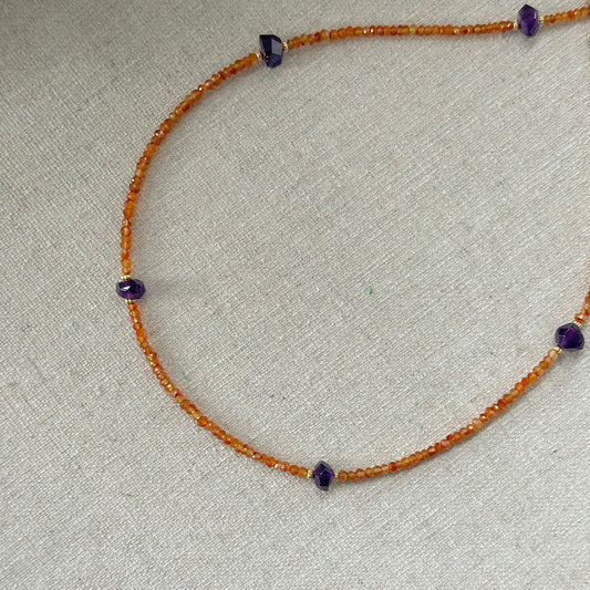 Citrine And Amethyst Mixed Freshwater Pearl Beaded Necklace