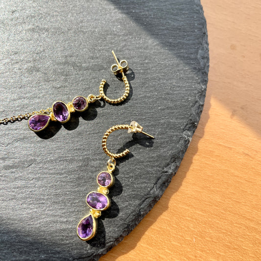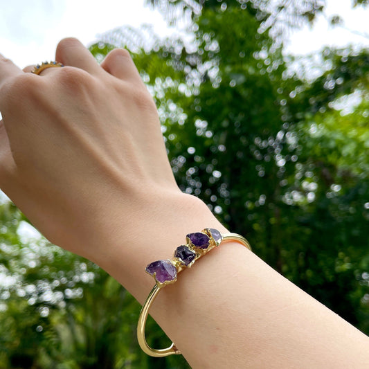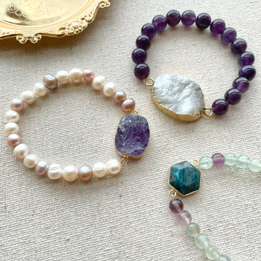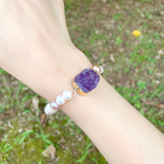Amethyst Raw Stone And Freshwater Pearl Beaded Bracelet