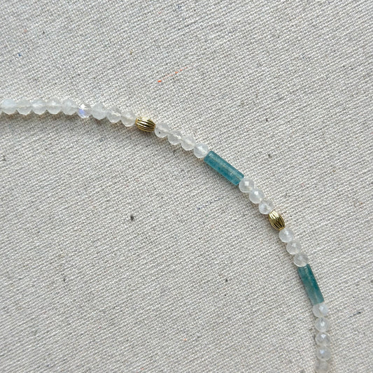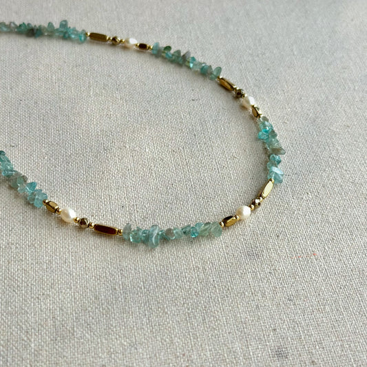 • Moonstone And Apatite Mixed Freshwater Pearl  Beaded Necklace