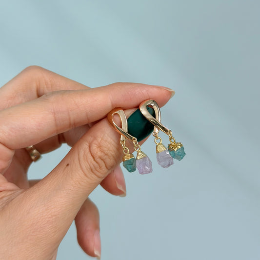 • Amethyst And Apatite Raw Stone Gold-plated Earring