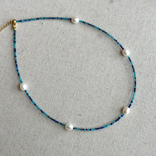 Apatite Lapis Mixed Freshwater Pearl Beaded Choker Necklace