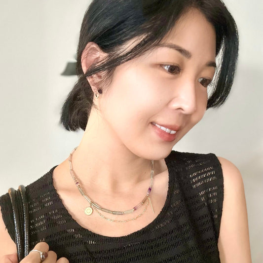 Fluorite Three Heart And Green Agate Beaded Necklace