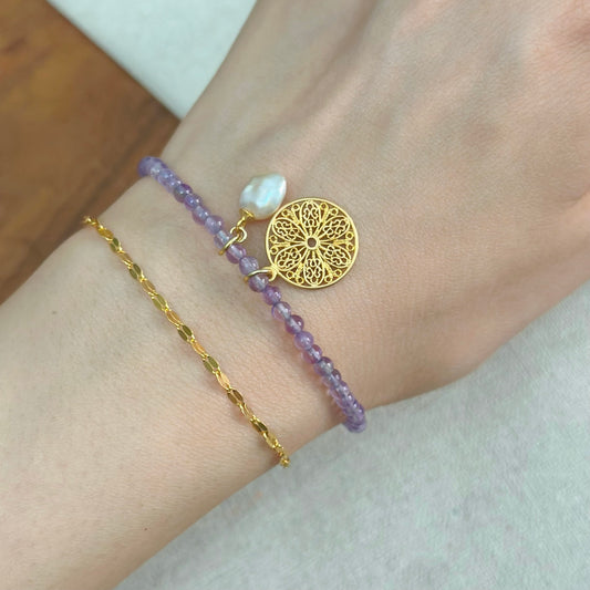Amethyst Beaded And Freshwater Pearl Bracelet