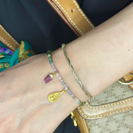 Amethyst Beaded And Amethyst Raw Stone Bracelet
