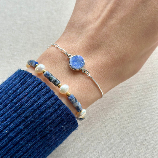 Sodalite And Freshwater Pearl Beaded Bracelet