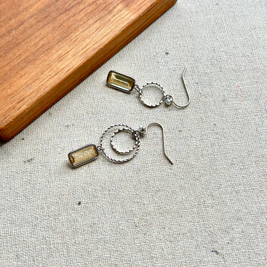 Green Tourmalime And Citrine Heart Danling Sterling Silver Earring