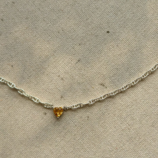 Citrine Heart Mariner Link Chain Sterling Silver Necklace