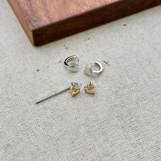 Citrine Heart Two-way Sterling Silver Ear Hoop