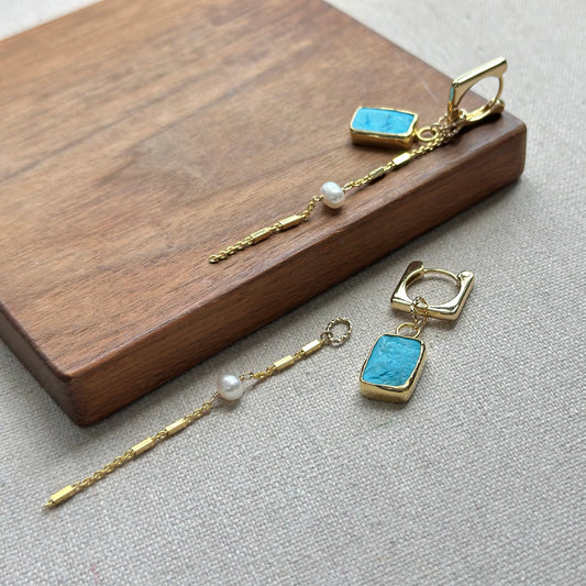 Turquoise And Freshwater Pearl Multi-way Ear Hoop