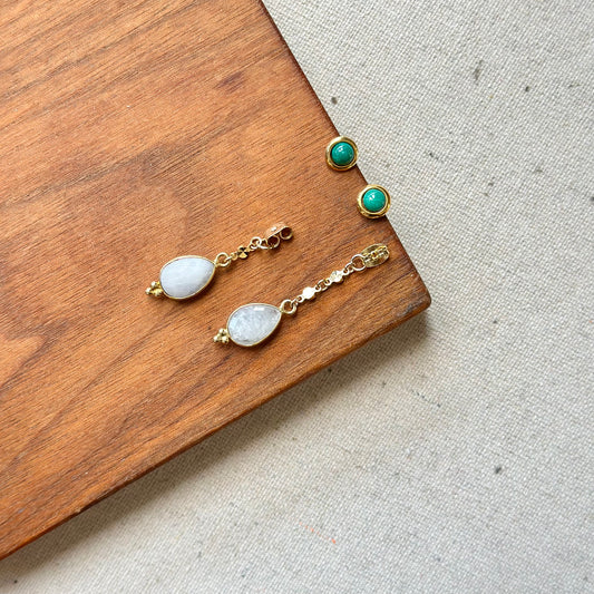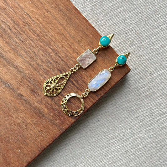Turquoise And Moonstone Filigree Gold-plated Earring