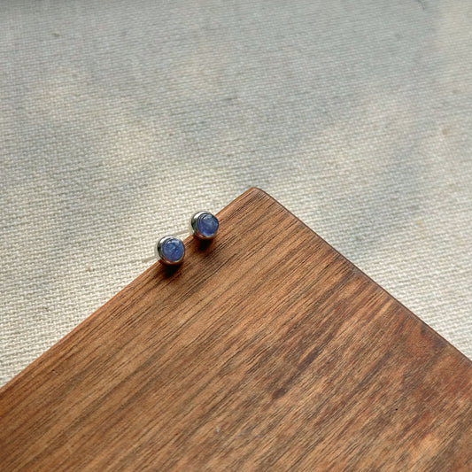 Tanzanite Round-shaped Cabochon Sterling Silver Ear Stud