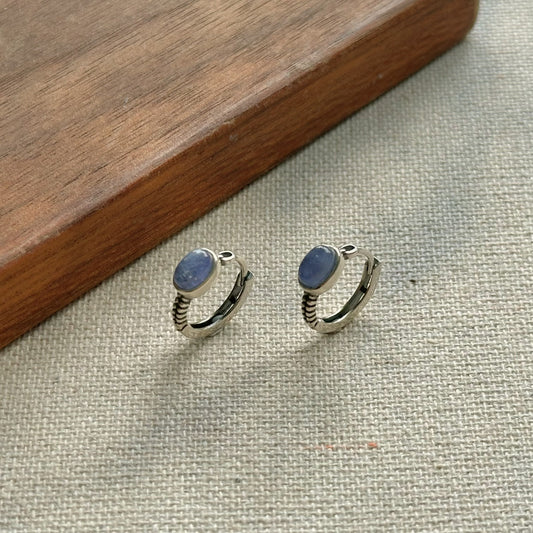 Tanzanite Oval-shaped Cabochon Sterling Siver Ear Hoop