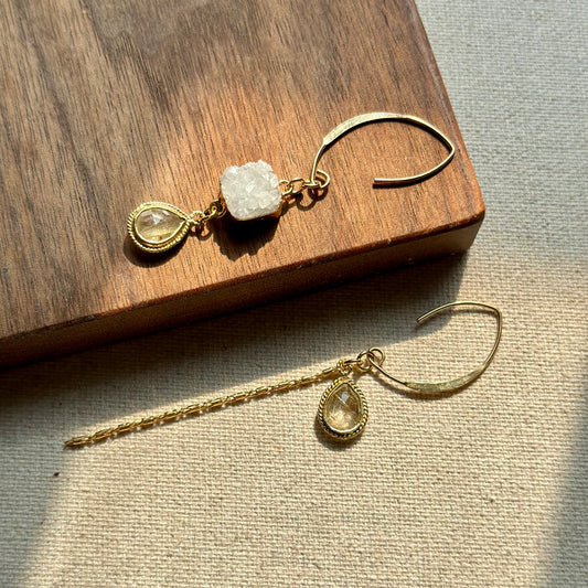 Moonstone Green Druzy Mixed Two-way Gold-plated Ear Hoop