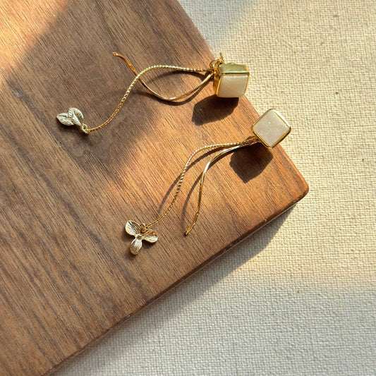 Square Druzy Floral Two-way Gold-plated Earring