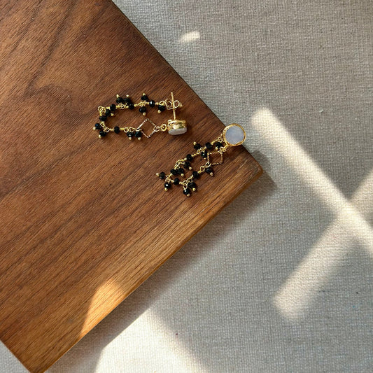 Black Obsidian Asymmetric Gold-plated Earring