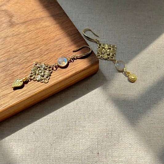 Moonstone Filigree Gold-plated Earring