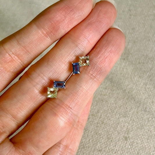 Mixed Iolite And Heliodor Sterling Silver Ear Stud
