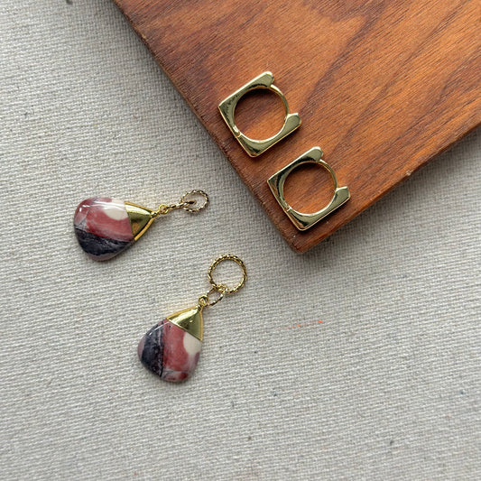 Rhodochrosite Two-way Gold-plated Ear Hoop