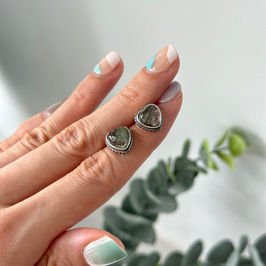 Golden Rutilated Quartz And Labradorite Textured Stud Earring