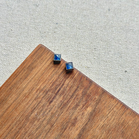 Kyanite Cabochon Sqaure Shaped Sterling Silver Ear Stud