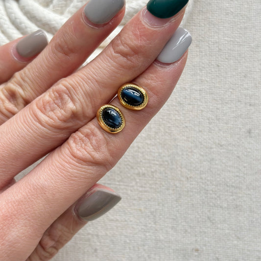 Pietersite Cabochon Gold-plated Ear Stud