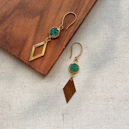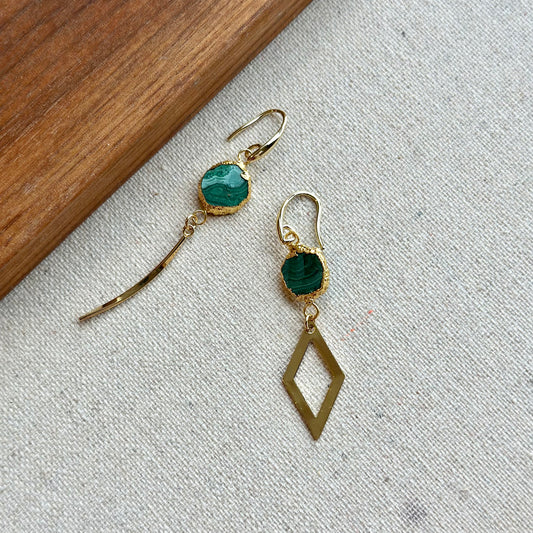 Malachite Asymmetric Rhombus Gold-plated Earring