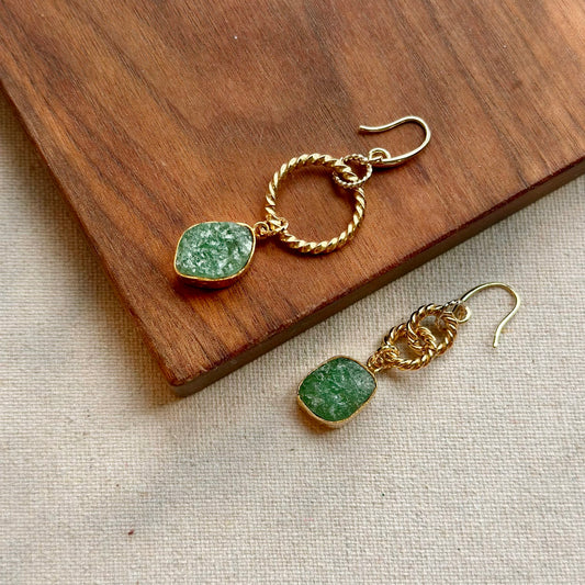 Green Aventurine And Twisted Ring Gold-plated Earring