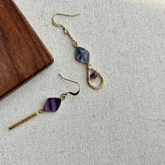 Fluorite Asymmetric Dangling Gold-plated Earring
