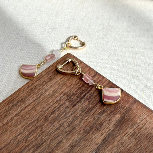 Rose Quartz And Watermelon Tourmalime Gold-plated Two-way Ear Hoop