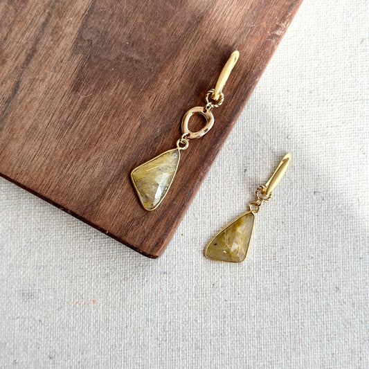 Golden Rutilated Quartz Matt Gold-plated Sterling Silver Two-way Ear Hoop