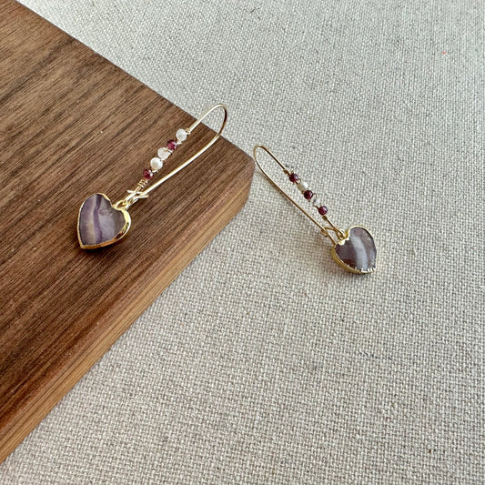Fluorite Heart Wire Wrapping 14k Gold-filled Earring