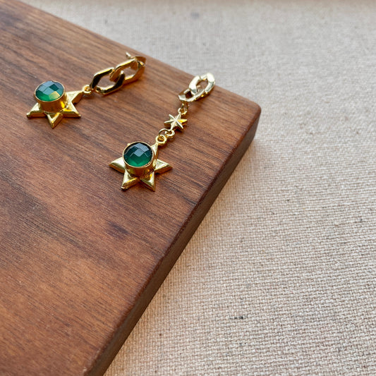 Sold outStar-shaped Green Chalcedony Earring