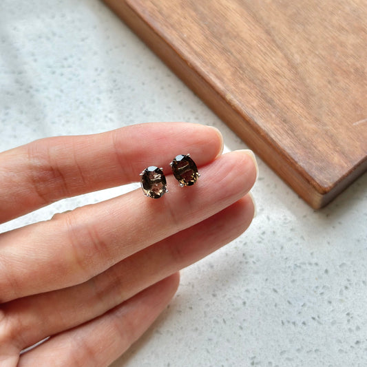 Smoky Quartz Oval Cut Prong Set Sterling Silver Stud