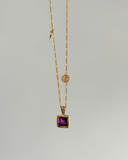 Amethyst Square Round plates 14K Gold-filled Necklace