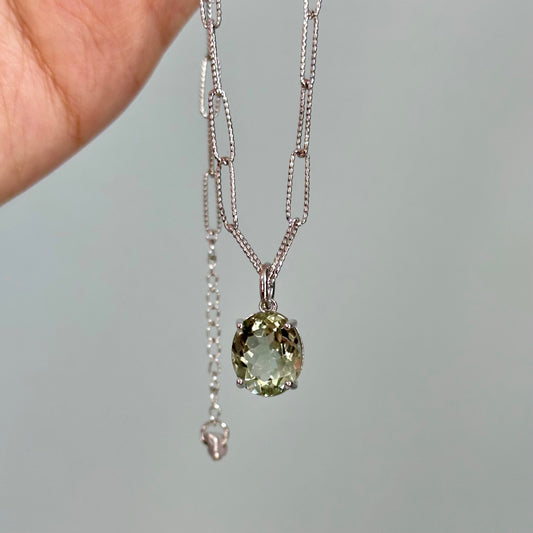 Green Amethyst Clip Chain Sterling Silver Necklace