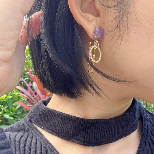 Amethyst And Chain Hoop-like Gold-plated Earring