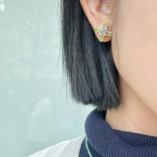 Peridot Cross And Amethyst Sterling Silver Ear Stud
