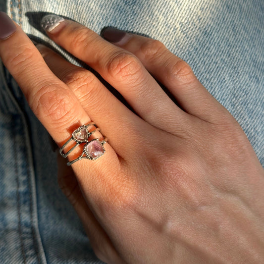 Lavender Milky Amethyst Heart Adjustable Sterling Silver Ring