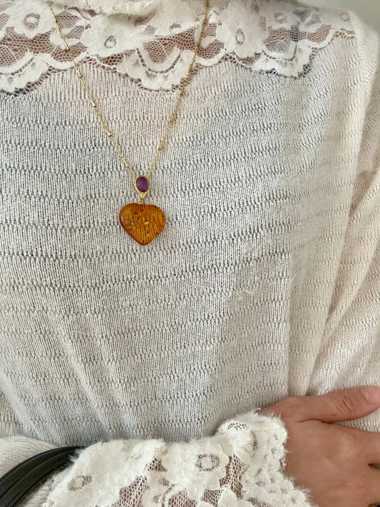 Citrine Heart Mix Topaz And Amethyst Two-tone Gold-plated Necklace