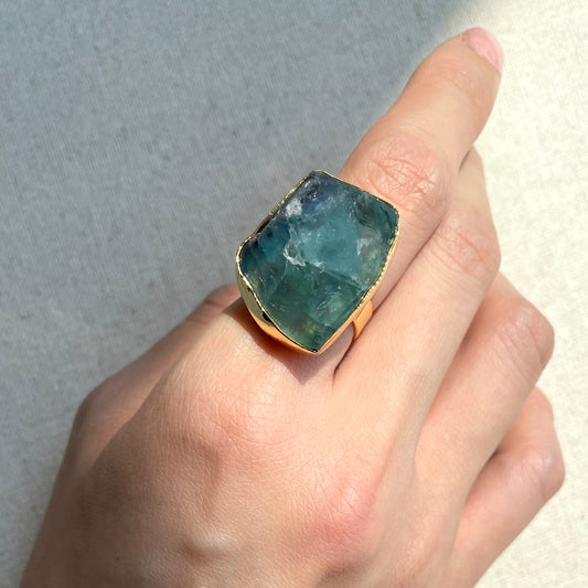 Oversized Raw Fluorite Adjustable Gold-plated Ring