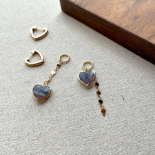 Fluorite Heart-shaped Gold-plated Two-way Ear Hoop