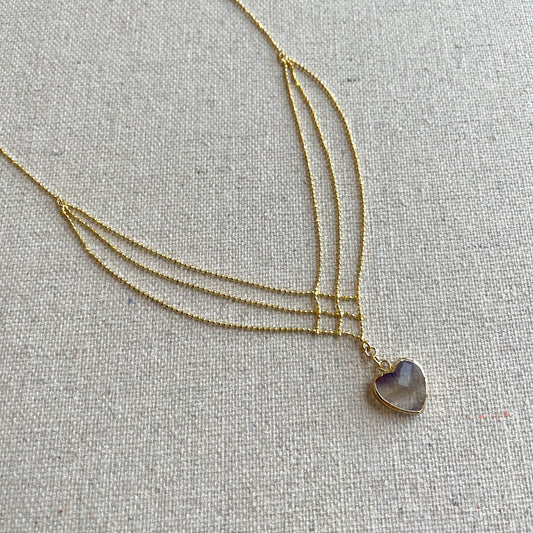 Fluorite Heart-shaped Lace Chain Gold-plated Necklace
