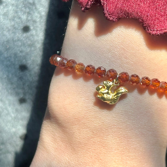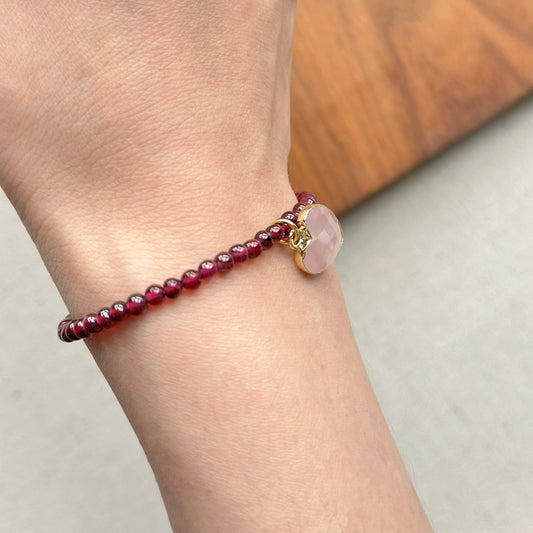 • Garnet Beaded And Rose Quartz Heart Bracelet